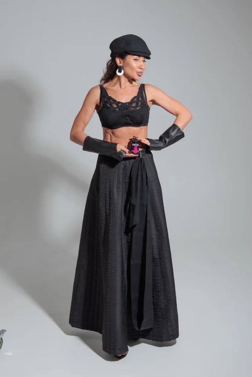 Стёганая юбка в пол на широкой резинке, дополнена поясом. С двумя боковыми карманами для повседневного комфорта. Длина изделия 100 см.